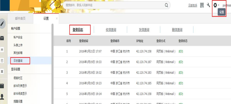 出差情況下,若使用阿里企業(yè)郵箱移動(dòng)端比較多,移動(dòng)端的IP漂移的比較嚴(yán)重,所以IP經(jīng)常在變化的,那么如果是在周邊城市,那么就是這種現(xiàn)象引起的.這個(gè)時(shí)間不用太過(guò)于擔(dān)心.可以登錄郵箱webmail--設(shè)置--歷史記錄查一下登錄記錄有沒(méi)有錯(cuò)誤的現(xiàn)象出現(xiàn),一般密碼只有帳號(hào)所屬人最清楚,若為盜號(hào)行為,均會(huì)有登錄失敗的日志.