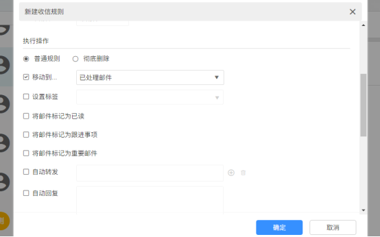 2.執(zhí)行條件可以移動(dòng)郵件,給郵件添加標(biāo)簽,設(shè)置自動(dòng)轉(zhuǎn)發(fā)等等。