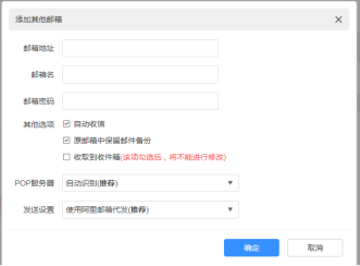 2. 然后點(diǎn)擊“添加其它郵箱”輸入需要代收的郵箱地址,郵箱名,郵箱密碼,同時(shí)可以選擇”是否自動(dòng)收信”和”在原郵箱中保留郵件備份”,若選擇將郵件收取到”收件箱”中將不能夠在修改。