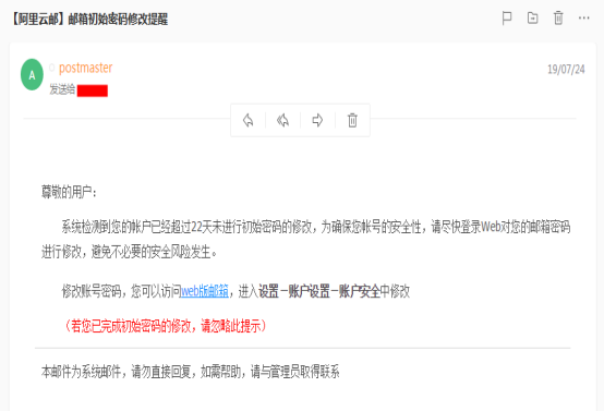 2.【阿里云郵】郵箱初始密碼修改提醒